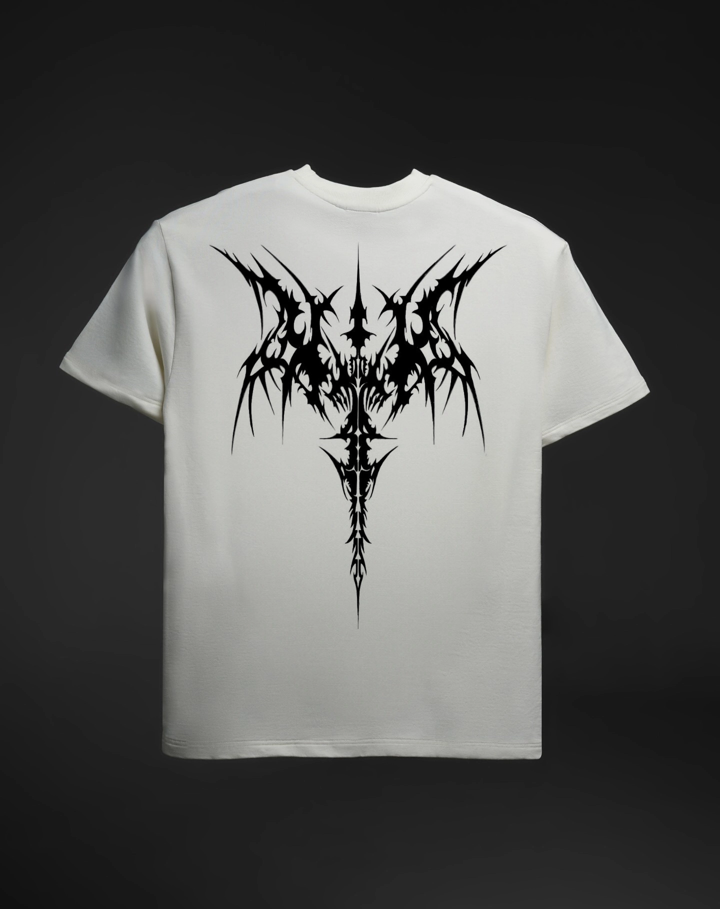A bold tribal-inspired winged emblem brings dark, unapologetic energy to this piece.